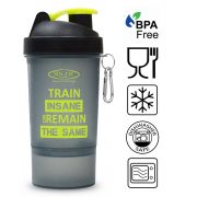 Sinew Nutrition smart shaker bottle is the all-in-one soultion for the serious athlete. Capacity of 600ml (Measurements upto 500 ml). The Bottom Compartment holds 50 Gms (Approx) of Protein Powder.